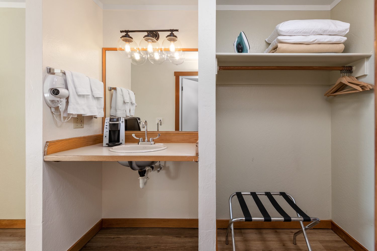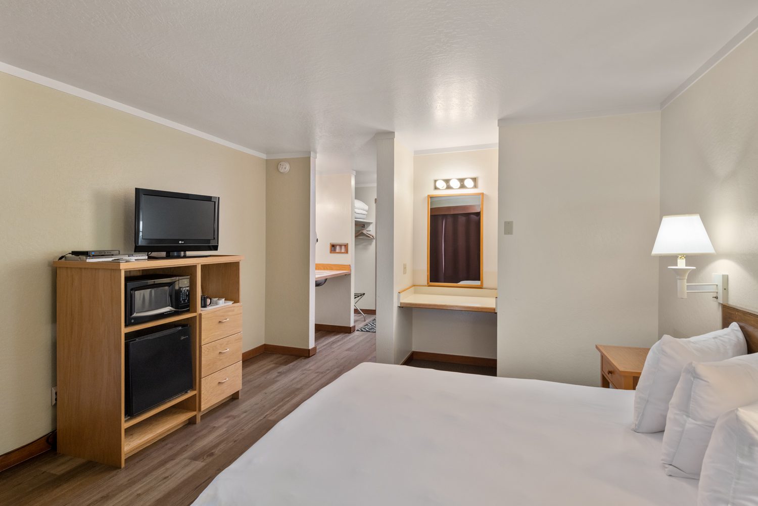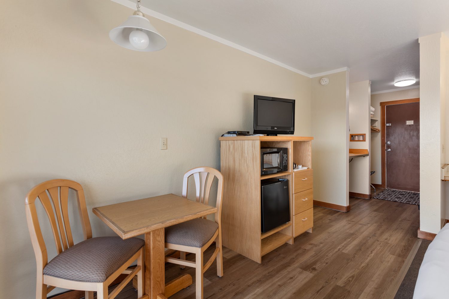 Our ADA compliant room has a queen bed that is 22″ high and a pull out twin bed. The room features a view of the Noyo Harbor. This room also has an ADA accessible bathroom including roll in shower with seat. Our lobby also provides an accessible ramp and all entryways and walkways to the room are unobstructed. This room is reserved only for those with disabilities requiring accessibility.